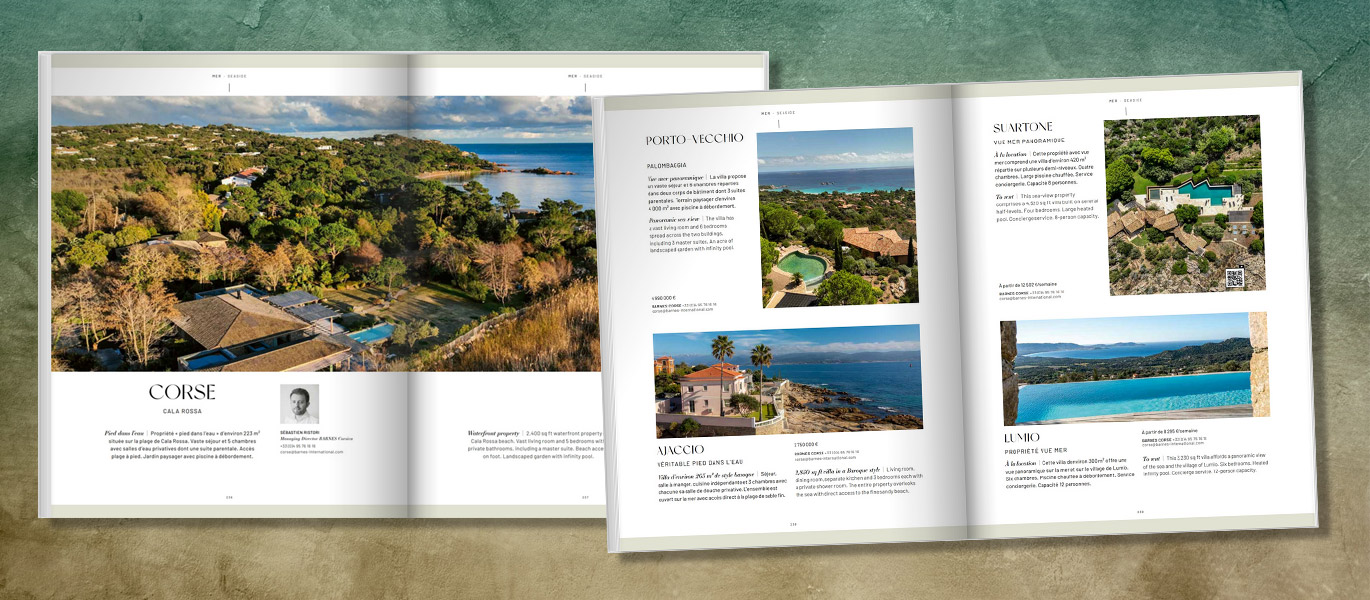 Bien sur comme à chaque édition ce sera l’occasion dans ce numéro 33 de faire un tour du monde des plus belles propriétés selon BARNES. De Paris à New york en passant par Como et Miami, Saint Barth, Londres,… et tant d’autres pour l’international. Pour la France Cassis, Saint-Tropez, la Côte Basque et le pays d’Aix au sud et Lille, Lyon, Nantes et Annecy pour le nord… et bien sur la Corse est naturellement présente avec une sélection de notre agence de biens d’exception à Porto-Vecchio, Lumio et Ajaccio.
