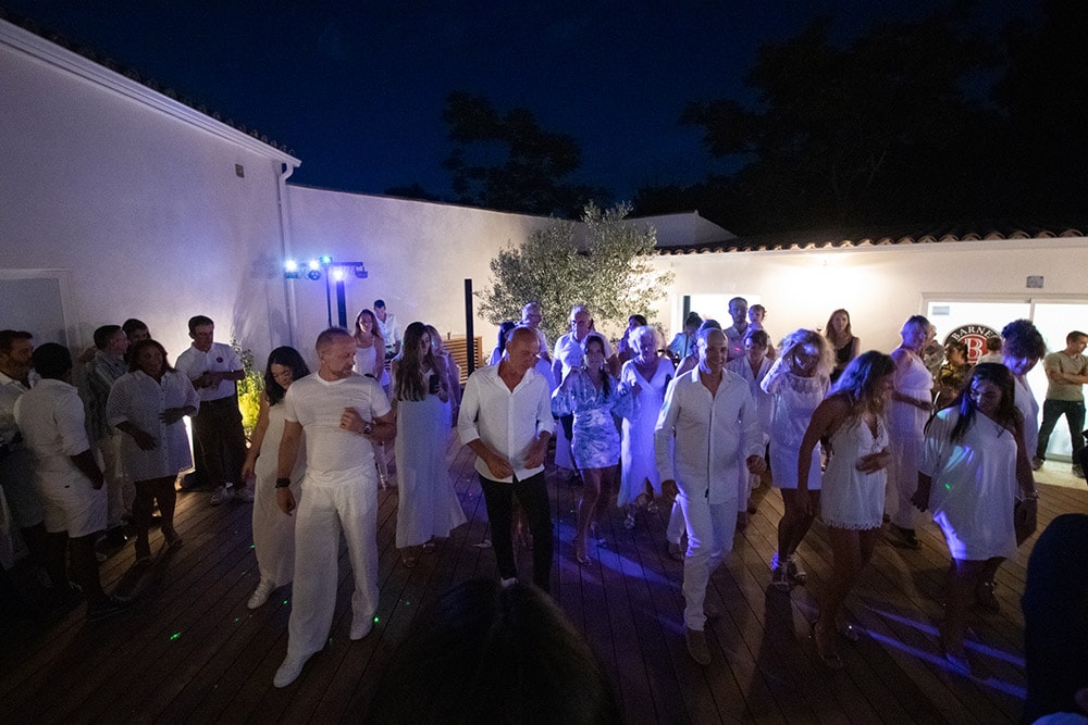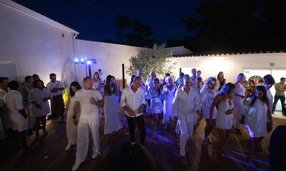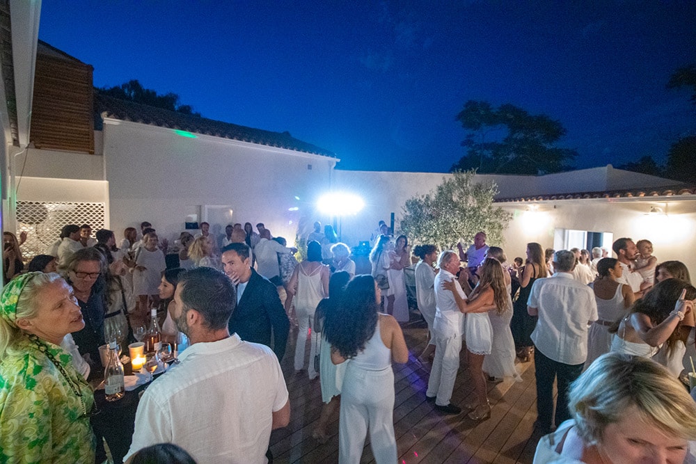 Ce 8 Juillet comme l’invitation l’annonçait le thème et le dress code de la soirée était le blanc, et chacun a joué le jeu pour apporter ensemble une ambiance lumineuse qui fait tout le charme de nos « Serate Biance ». Cette soirée se voulait aussi un moment de découverte et d’art avec le vernissage de l’artiste sculpteur Stéphane Deguilhen venu nous présenter ses dernières œuvres qui ornaient les différents espaces de l’agence. Tout le monde a pu remarquer le taureau majestueux, une de ses œuvres emblématiques, qui semblait attendre dès l’entrée chacun de nos invités. Une fois la porte passée, après une séance photo avec la PhotoBooth d’Angélique Photographie et un cocktail de bienvenu en main, chacun a pu prendre part à la soirée et selon son envie retrouver ses proches ou converser avec son voisin, ou se restaurer en dégustant une spécialité dans un des buffets proposés pour l’occasion par nos partenaires : La Bocca, le Ranch’o Plage, Nymphéa et Grain de Passion. La nuit venue une tombola a eu lieu pour permettre à un heureux gagnant de gagner un dessin original de l’artiste réalisé en situation sous les yeux d’un public conquis. Et comme une soirée en Corse ne peut s’envisager sans musique, DJ Homsy a pris les platines pour réunir tous les convives dans le patio qui faisait lieu de piste de danse éphémère, et pour garder le rythme une animation de danse salsa qui a vu se révéler de nouveaux talents. Ce fut donc une fois de plus une soirée mémorable dont nous sommes fiers et qui marquera à coup sur le mois de Juillet de nos invités.
