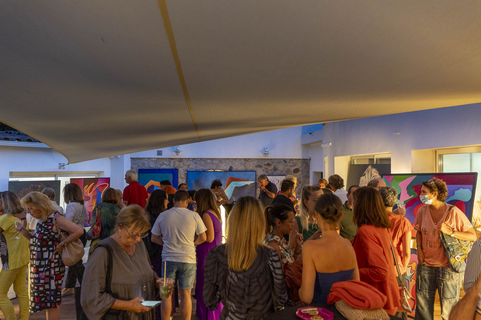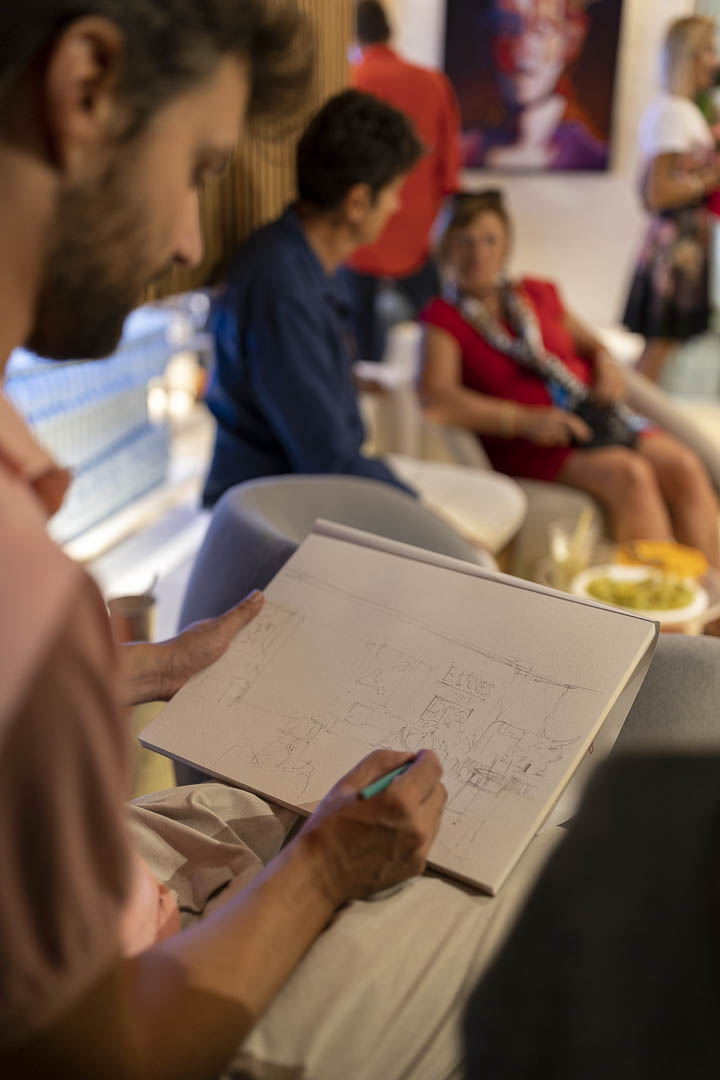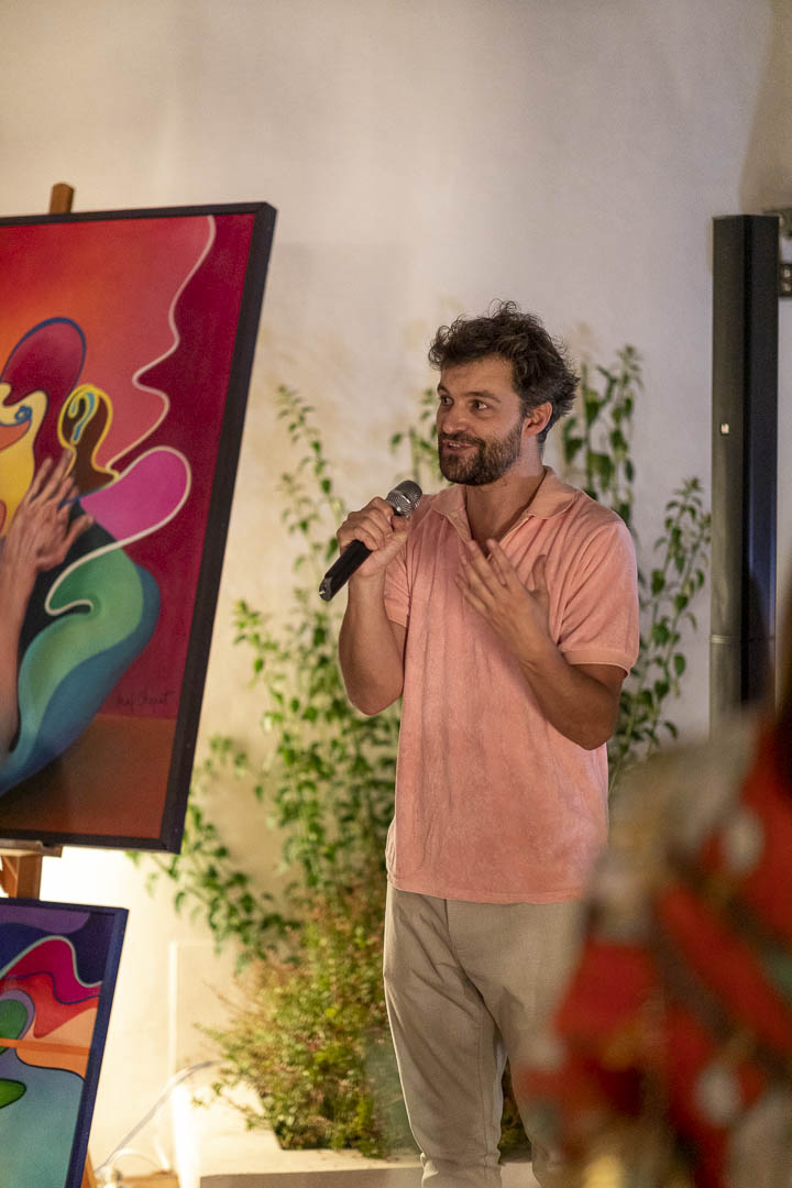 Le 09 septembre nous avons eu l’envie d’organiser pour la fin de saison estivale une soirée placée sous le signe de la couleur. Une thématique qui s’est imposé naturellement sous l’influence des œuvres de MAXCHAPAT un artiste prometteur que nous avons souhaité exposer dans les nouveaux bureaux de notre agence de Cala Rossa. C’est effectivement la couleur qui domine et emporte le regard dans les peintures de cet artiste, particulièrement celles de la période plus récente qui offrent à contempler des silhouettes et portraits aux contours déliés et fluides et aux teintes chaudes et intenses.