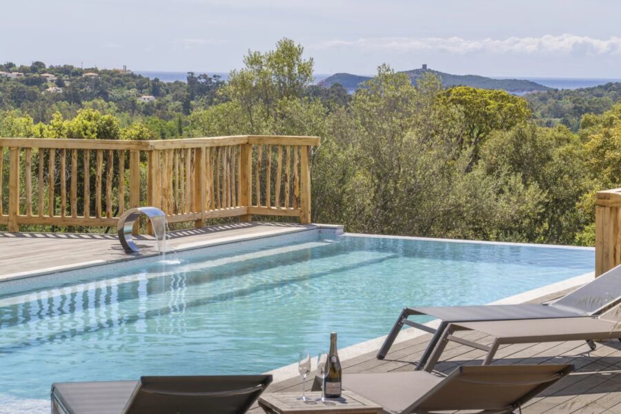 Propriété située non loin de la baie paradisiaque de Pinarello, bordée par ses montagnes en toile de fond.
